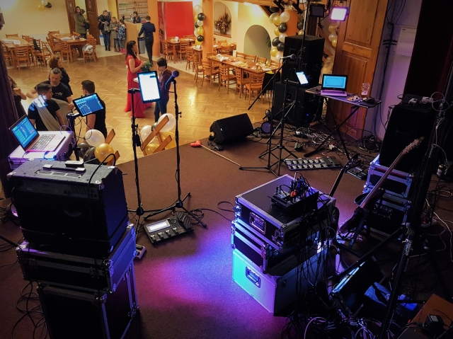 Maruranti pojali ples ve stylu řecké mytologie. Nechyběl dokonce ani bájný Dionýsos. Večerem bravurně provázel Petr Stolař a jeho divadelní tým. Vše klapalo jako na drátku a nám nezbylo než návštěvníky bavit muzikou.