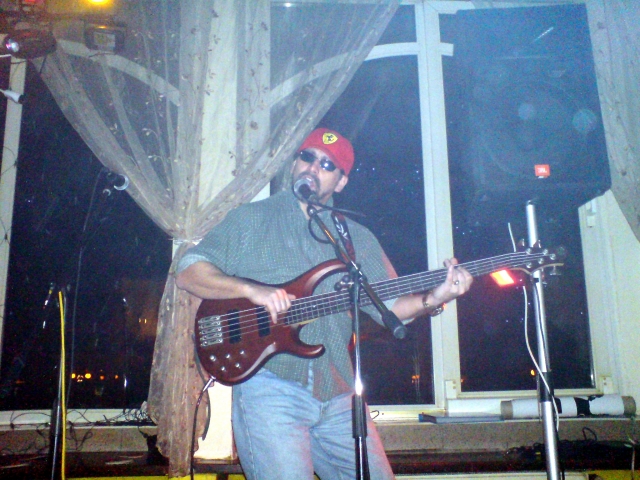 Ještě pozoruhodnější byla předkapela, vlastně předmuzikant, a to nový děčínský rocker s baskytarou RADEK FLACHS (viz připojené obrázky).